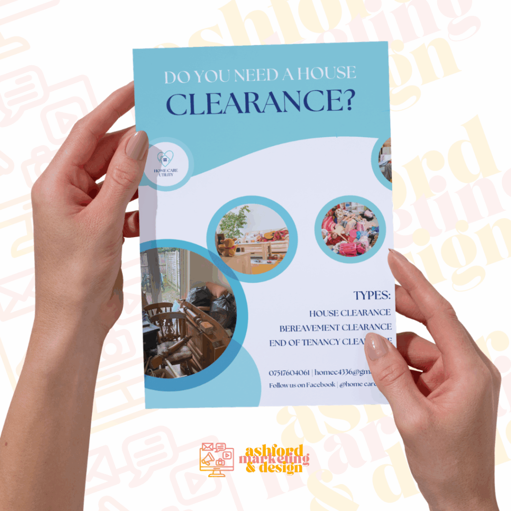 Flyers Single sided from £25 Double sided from £50 Mr P’s Power Cleaning Mobile Ear Care Porefection CEM Beauty Home Care Utility Home Care Utility Home Care Utility Bake Your Occasion
